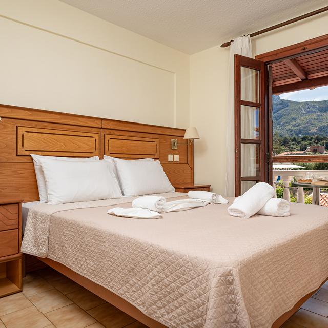 In Hotel Athena staat de eigenaresse vaak al op je te wachten met een warm ‘Welcome in Hotel Athena’! Ze spreekt een aardig woordje Engels en Duits, altijd handig. Het is hier heerlijk rustig en je kijkt uit op een prachtig bergmassief en een mooie groene omgeving met in het midden een fijn zwembad. Binnen enkele minuten lopen sta je al in het gezellige centrum van Kokkari, waar de restaurantjes en winkeltjes rondom het vissershaventje liggen. Ga een keer lekker eten bij restaurant Meltemi, een aanrader! En ga je graag naar het strand, dat ligt op circa 20 meter afstand van het hotel. Dit wordt genieten!